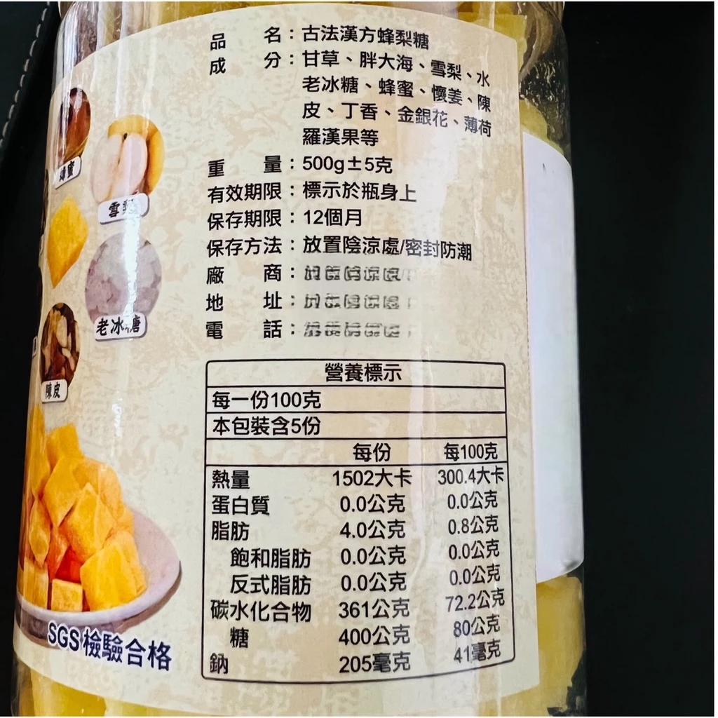 [八味養生鋪] 天然古法漢方蜂梨糖500g 百草梨膏糖 蜂梨糖 梨膏糖 梨糖 潤喉護嗓喉糖 彭大海 羅漢果 胖大海